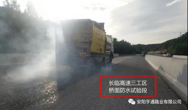 此次橋面防水試驗(yàn)段獲得了項(xiàng)目、監(jiān)理和指揮部的一致認(rèn)可,為我公司在長臨高速的防水施工奠定了一個良好的基礎(chǔ),也為亨通路業(yè)2018年的工程又傳來了一份捷報。