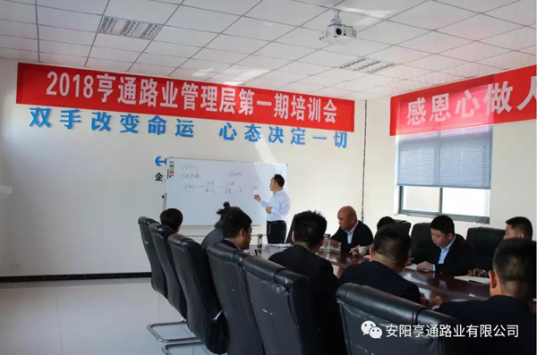 2018年4月18-20日,為加強(qiáng)公司管理隊(duì)伍建設(shè),增進(jìn)中層間的相互交流,培養(yǎng)鍛煉團(tuán)隊(duì)精神和協(xié)作意識(shí),亨通路業(yè)全體中層從天南地北各個(gè)項(xiàng)目返回公司集中開展了為期三天的以“感恩心做人,責(zé)任心做事”為主題的專項(xiàng)培訓(xùn)活動(dòng)。